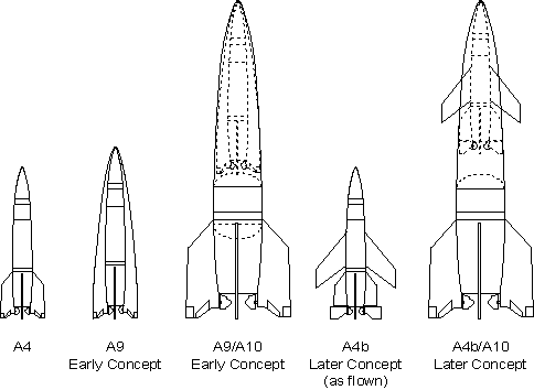 There were actually two designs of A9. The first version had a leading-edge wing on it which matched the profile of a V2. The second design featured a swept back wing design like the A6 or A7.